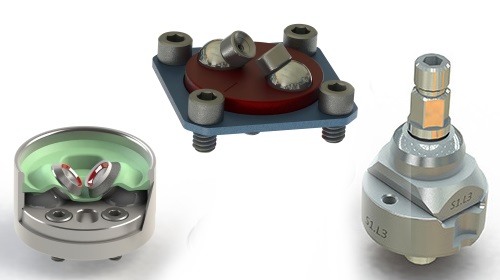 The Spherolinder is our original product line. It is intended for industrial duty, and has the highest load capacity for a given mating surface interface radius. All mating components are fabricated from hardened and precision ground 440C stainless steel. SPH mounts always have three mating elements.