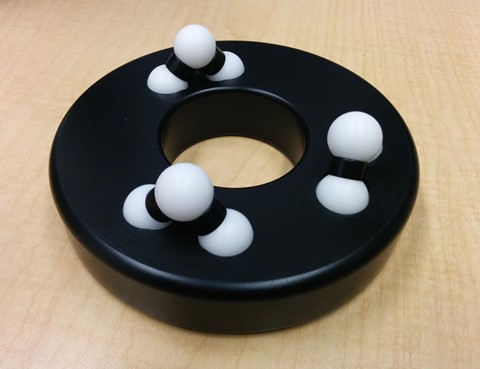 ![]() Our patented BiCollar technology lends itself easily to direct embedding into third-party products, bypassing the need for the bolt-in base blocks of the MKM product line, reducing stack height by more than 50%, eliminating the most complex components and lowering costs significantly. ![]() This is very appealing for small interfaces, where the size of standard fasteners becomes a limiting factor. In these pictures we show part of an embedded BiCollar mount used for repeatable positioning in an electro-optical manufacturing application. The balls are 1 mm in diameter, and the carrying capcity is over 10 kg, used to ensure adequate clamping forces. Being kinematic, the mount remains fully defined and repeatable even as the assembly goes in and out of different thermal environments. Integrated mounts can also be used to interface directly with manufactured objects by having 3 conical depressions formed or machined into them, as in the case of holding cast objects. ![]() Similarly, we can provide complete custom Integrated Kinematic Mount interfaces, which are complete matching mating-plate pairs that already embed all three (or four) mating elements, and provide a bolt-in interface for the entire mount (Instead of for each individual mating element), again reducing stack height, part count, and cost. ![]() We can provide interface plates that are round or rectangular, per your specification, from centimeter to meter scale. Integrated Kinematic Mounts can be useful, for example, in robotic applications, for quick registration and location of end effectors into work stations, repeatable tool pick up, and similar tasks. Integrated Kinematic Mounts can be complemented with feed-through quick connects of verious types, as well as magnetic or mechanical clamps according to your specifications. EKM and IKM designs are application-specific - contact us to discuss using them in your products. Please contact us with any questions,
