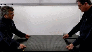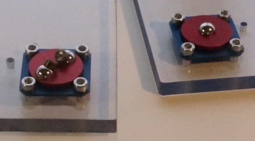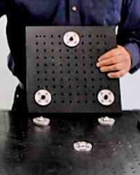 ![]() ![]() The OTx family of Kinematic Mounts uses g2 Engineering's patented BiCollar technology. It interfaces directly to optical table grids (metric or standard) and is intended for use in the lab on horizontal static assemblies to create kinematic mounts in a fast and flexible manner. OTx mounts are availabe in both 3- and 4- legged configurations ![]() The mount enables one or more optical sub-assemblies to be replaced onto the optical table in a repeatable fashion. The subassembly can be secured in place without deforming the breadboard. For example, the mount can be used to switch between multiple beam sources or end targets, or to temporarily place a measurement subsystem into the beam path. ![]() With a load capacity of 500 kg per mount point, the OTx mounts can handle most everything you're planning to place on an optical breadboard. In fact, when using composite (honeycomb-based) boards or tables, please ensure that the maximum allowed surface loading is not exceeded, and add load-distribution plates as necessary. OTx components come in versions that support either Metric (OTM) or Standard (OTS) optical grids. The "diamond" bolt pattern captures five adjacent grid spots, with the center one used for positioning the mating components and the peripheral ones used for clamping. ![]() Three-legged or four-legged? A three-legged mount comprizes three 2-DOF mating elements ("V" elements) whereas a four-legged mount comprizes two 2-DOF mating elements ("V") and two 1-DOF mating elements ("D" elements). Counter-intuitively, a four legged mount cannot warp the mated plates, even if the four legs are not on a single plane. ![]() Three-legged mounts are elegant in that they are comprized of identical mating elements, and completely decouple in-plane and out-of-plane stresses and strains. However, when mounting a rectangular object, a three-legged mount describes a triangle which is inscribed in the frame, so half of the area of the frame is outside of that triangle (shown in red on the right). A four-legged mount has a larger stable zone (shown in green), but unless retained, can lose stability under some loading conditions. For more information on four-legged kinematic mounts, please consult this page first. ![]() To gain familiarity with both three- and four- legged mounts, we recommend the combination kit, which includes 5 mating elements (Three 2-DOF ("V") and two 1-DOF ("D")) that can be combined to form either a three-legged OR a four-legged kinematic mount. Please contact us with any questions,